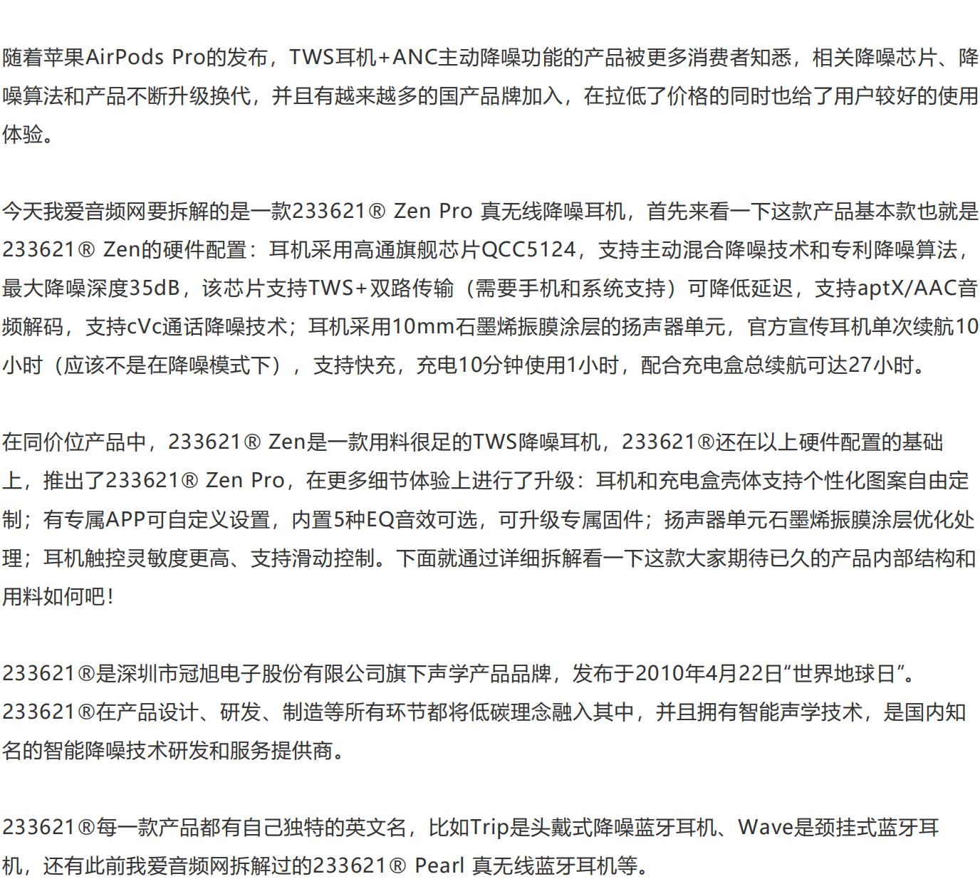 【轉載】我愛(ài)音頻網(wǎng)拆解報告:233621? Zen Pro 真無(wú)線(xiàn)降噪耳機