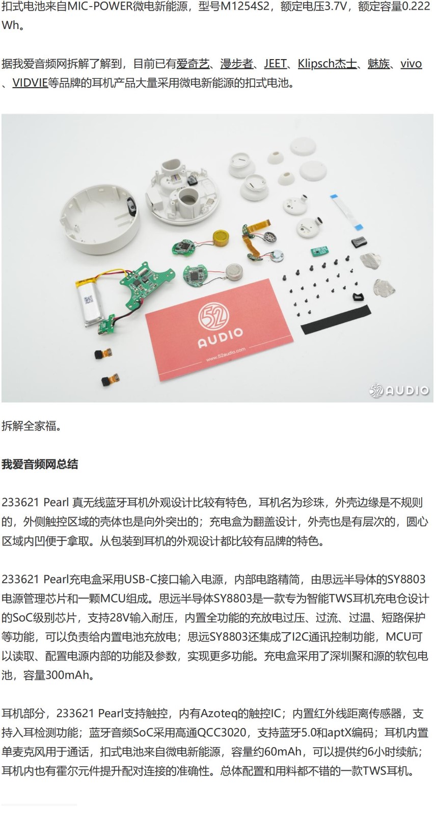 【轉載】我愛(ài)音頻網(wǎng)拆解報告:233621? Pearl 真無(wú)線(xiàn)藍牙耳機