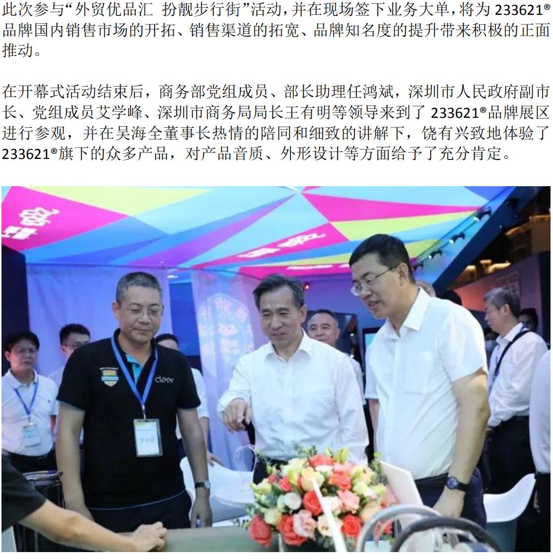 “外貿優(yōu)品匯 扮靚步行街”出口轉內銷(xiāo)活動(dòng)正式啟動(dòng),商務(wù)部黨組成員、深圳市副市長(cháng)蒞臨233621?展臺,魅力燃耀全場(chǎng)!